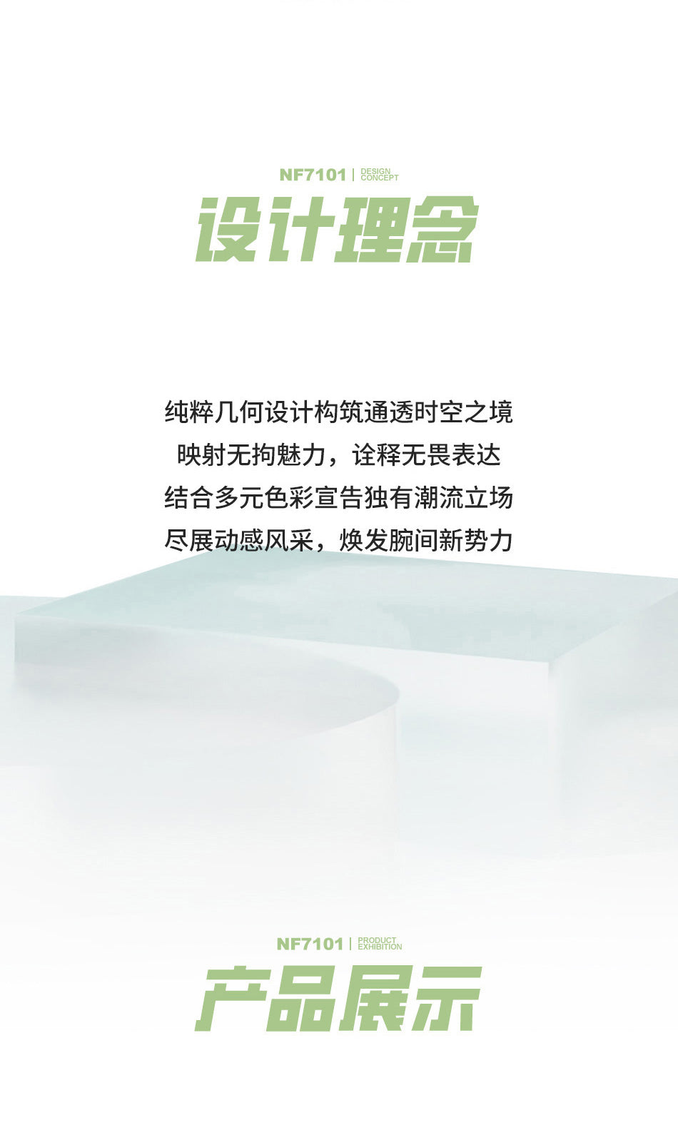The brightly colored silicone strap adds a touch of fashionable charm with its flexibility and comfort. Moreover, NF7101 offers a variety of trendy colors to choose from, meeting the personalized needs of different consumers.