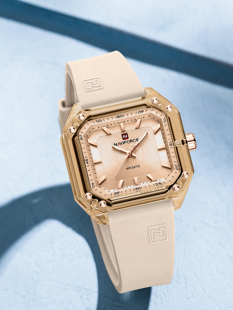 Naviforce NF7106 is a quartz timepiece that stands out with its playful, unisex design.