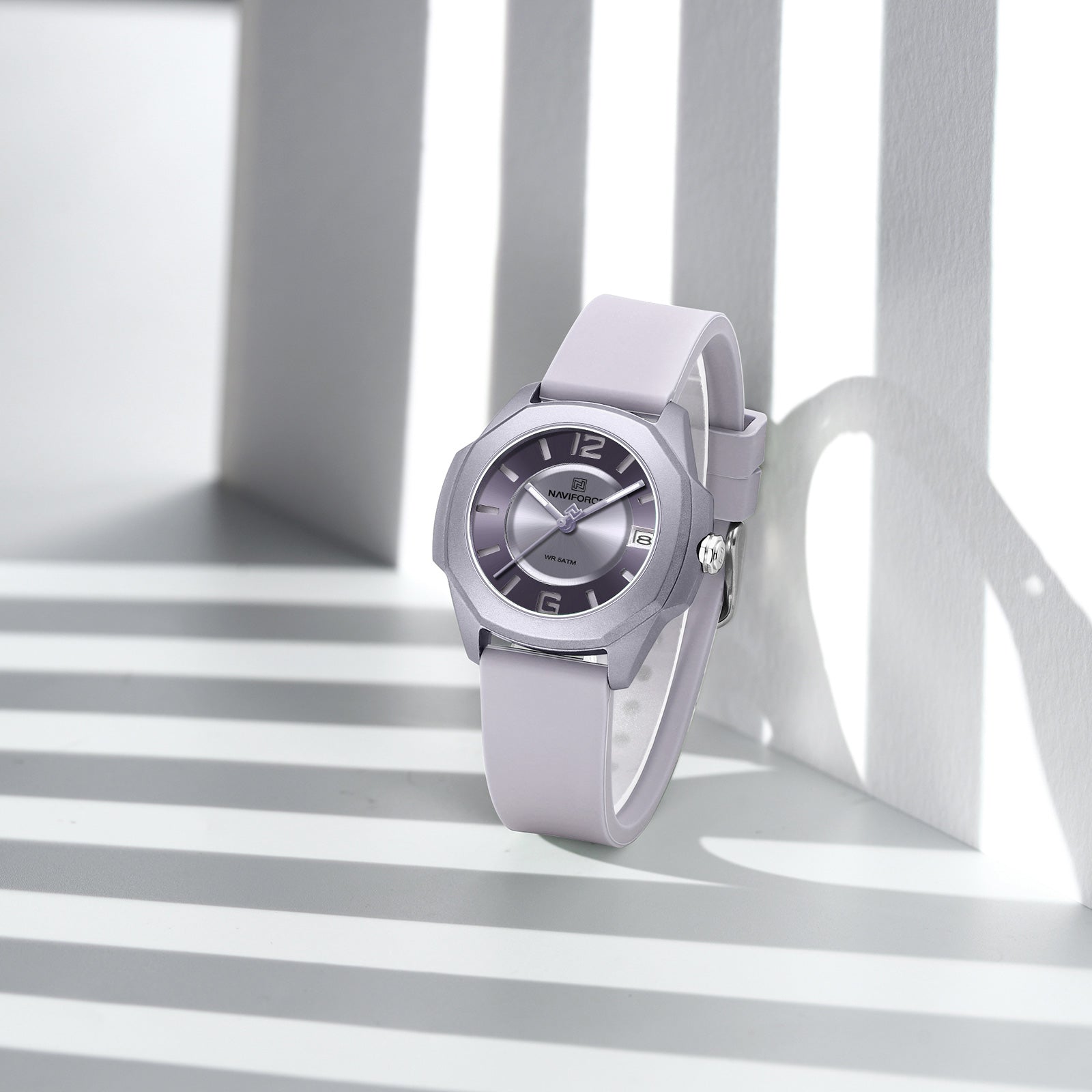 The NAVIFORCE NF7107 showcases vibrant and dynamic design for women. Featuring a striking 8-color palette and a skin-friendly silicone strap, it exudes fashion and energy.