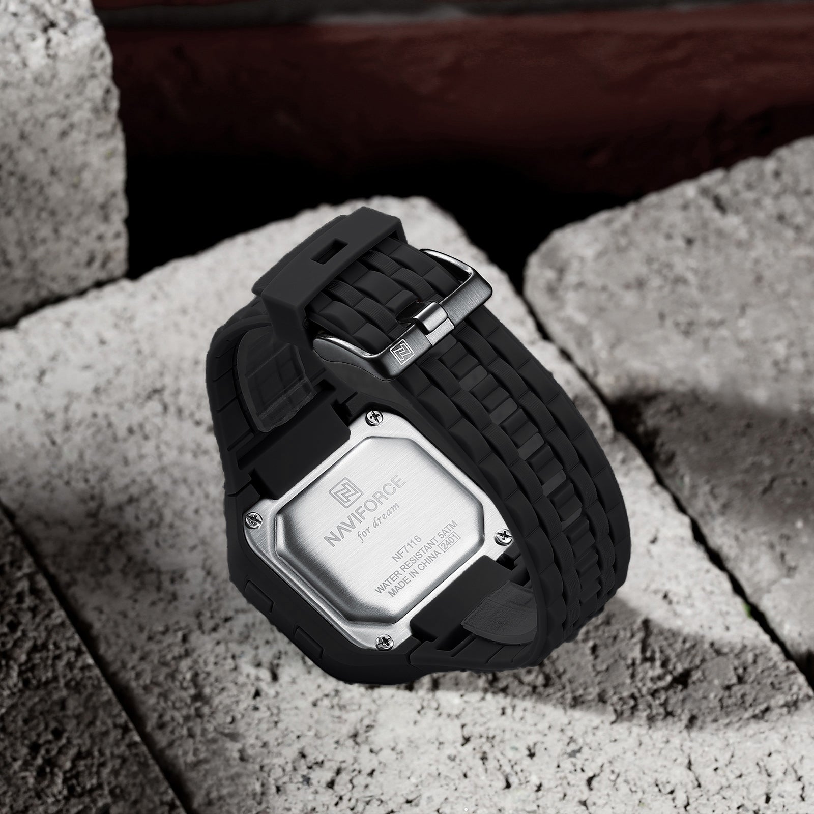 This Naviforce men's digital watch combines a retro-inspired design with modern functionality, perfect for the contemporary individual.