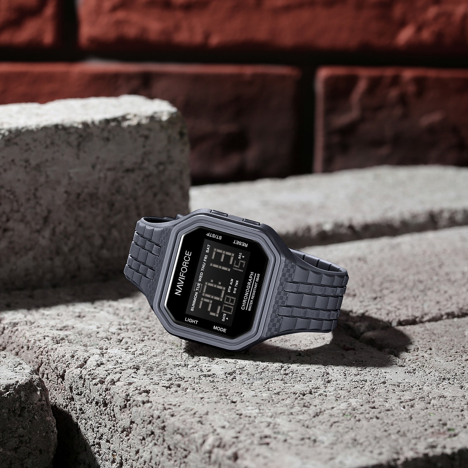 This Naviforce men's digital watch combines a retro-inspired design with modern functionality, perfect for the contemporary individual.