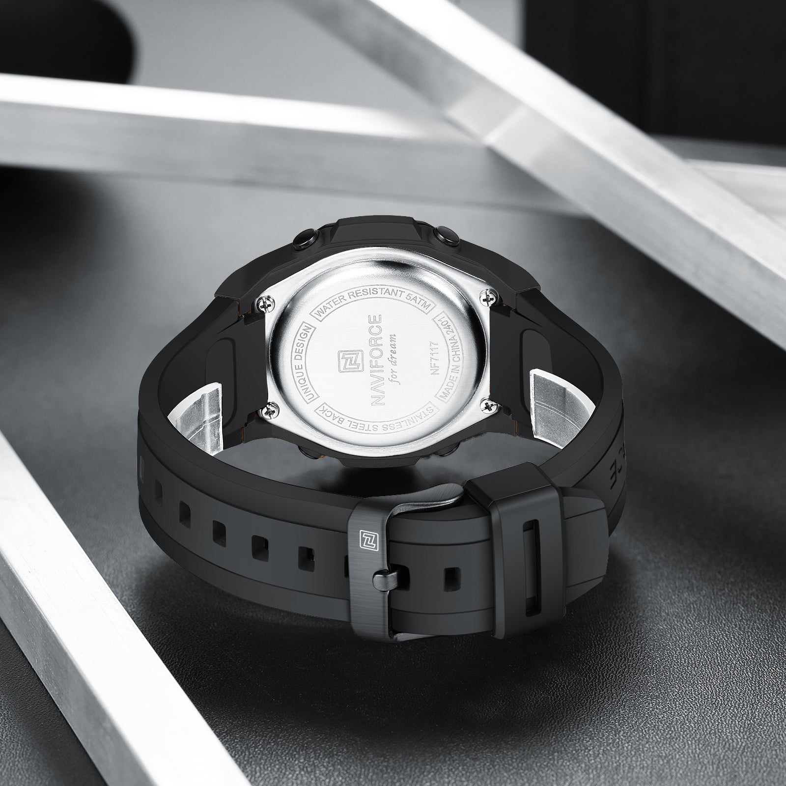 This sleek and functional Naviforce NF7117 digital watch is designed for the modern individual seeking reliability and style.