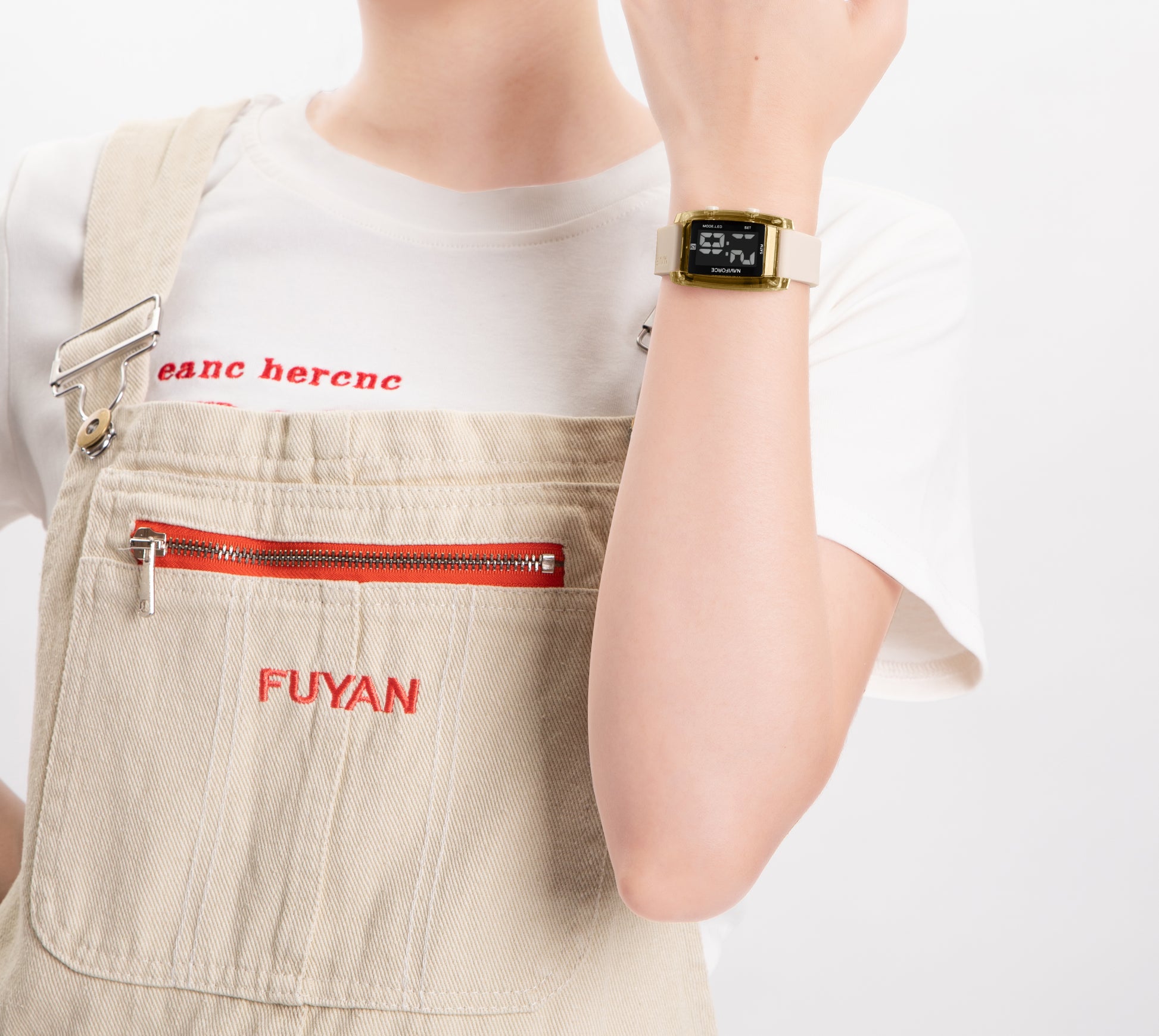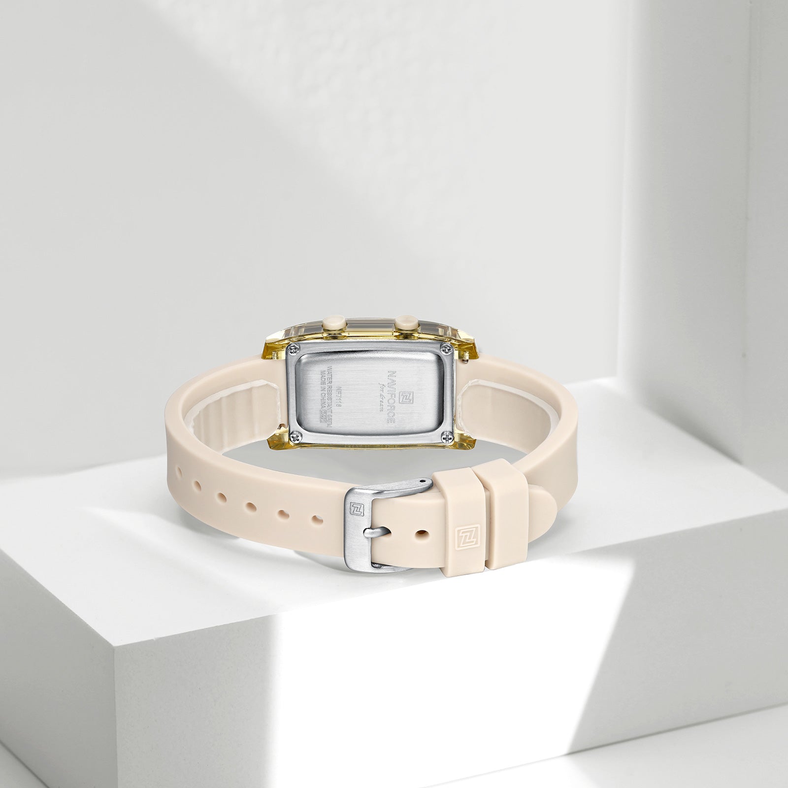NF7118 Black rectangular dial with Biege silicone strap Digital Watch