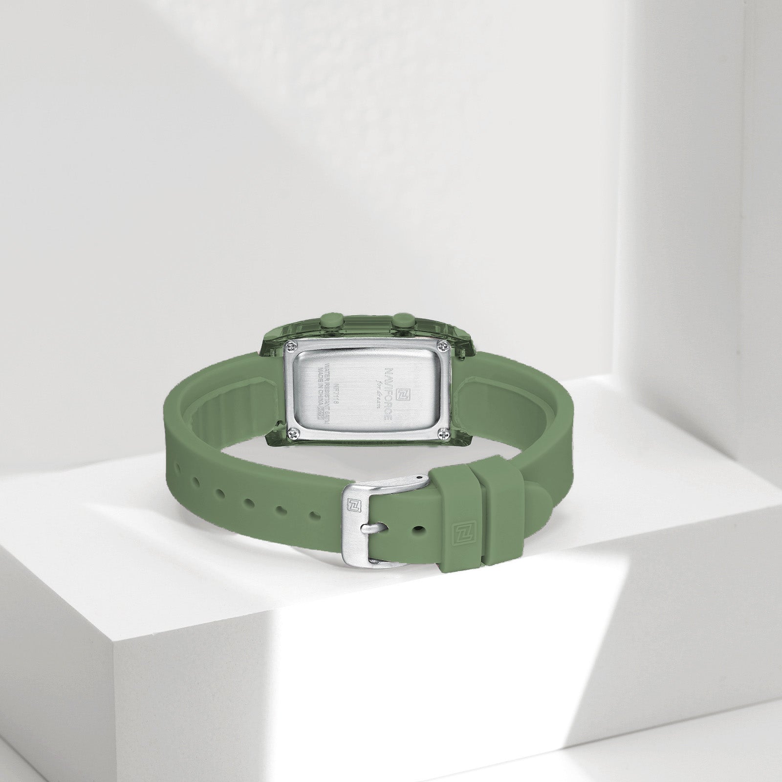 NF7118 Black rectangular dial with Green silicone strap Digital Watch