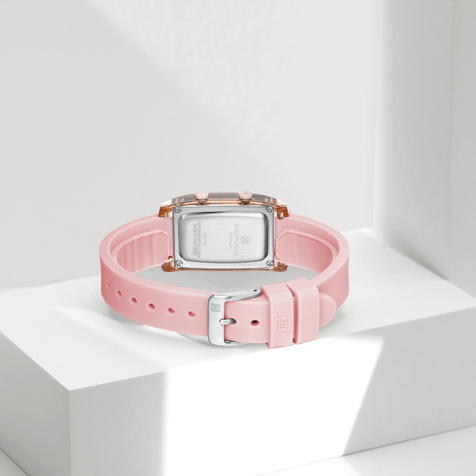 NF7118 Black rectangular dial with Pink silicone strap Digital Watch