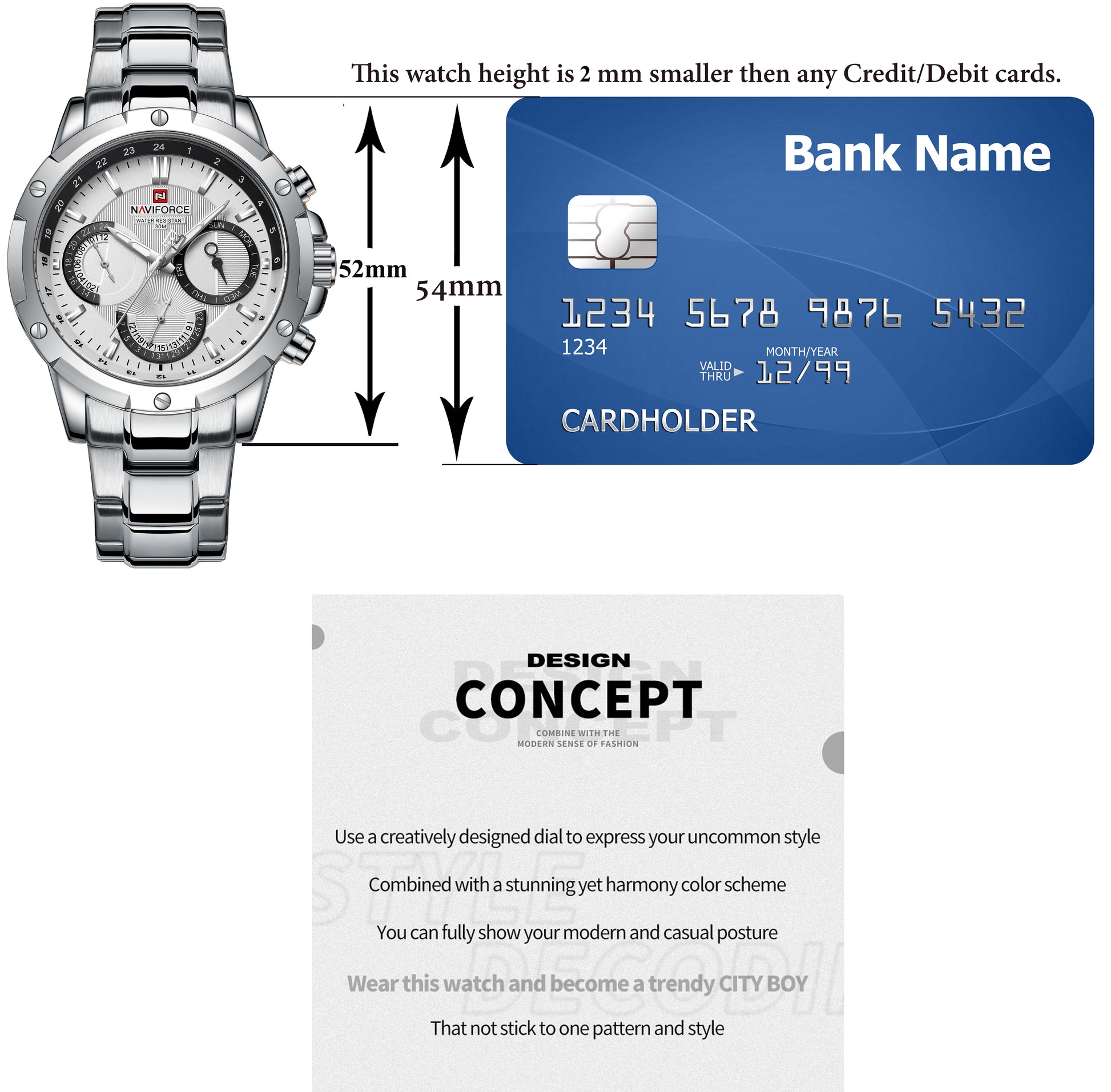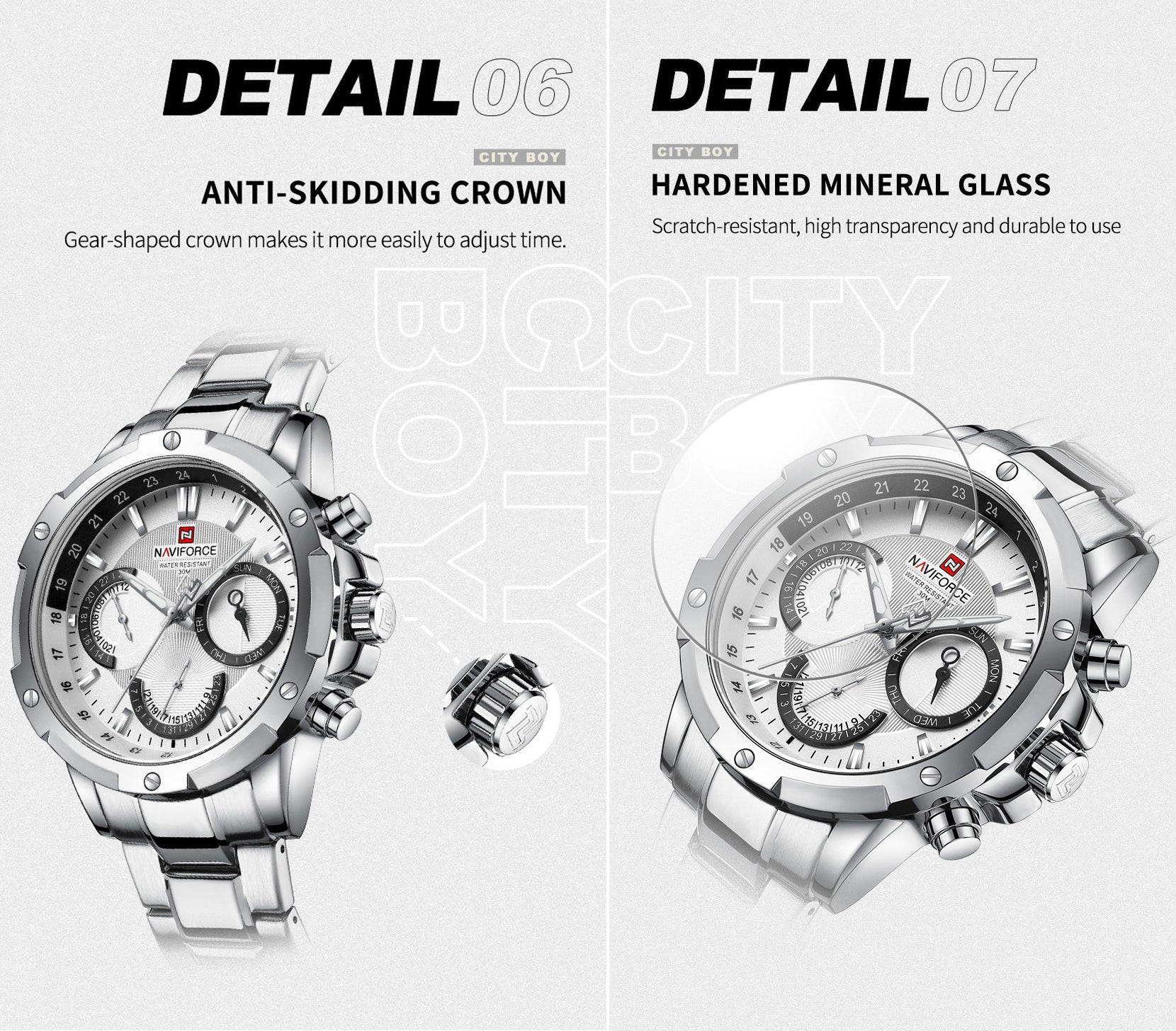 NF9196 Silver white Chronograph watch for men - Naviforce